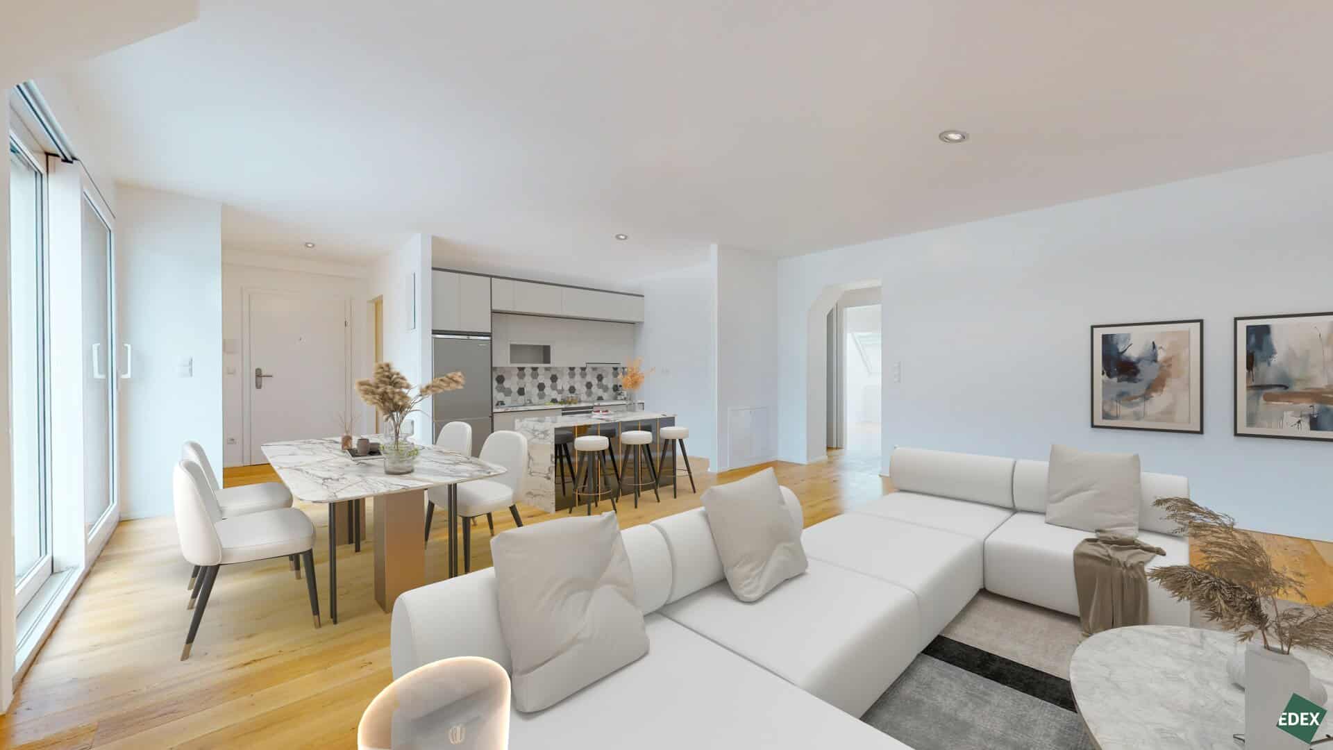Wir laden Sie ein, die Wohnung über unseren 3D-Scan zu besuchen.