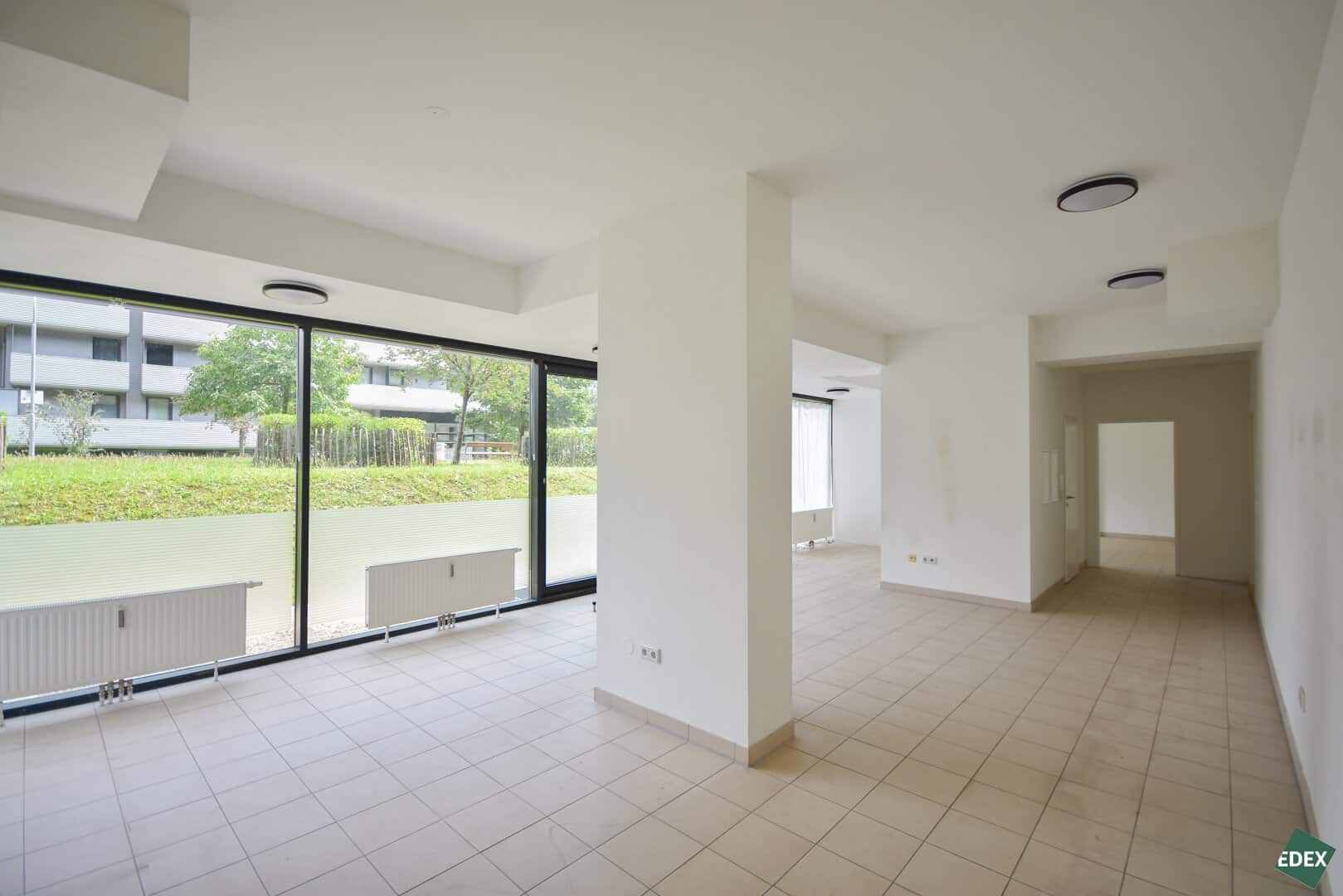 Durch die prominente Lage verfügt die Fläche über eine hervorragende Infrastruktur. Restaurants und Einkaufsmöglichkeiten, sowie öffentliche Verkehrsmittel sind fußläufig erreichbar.