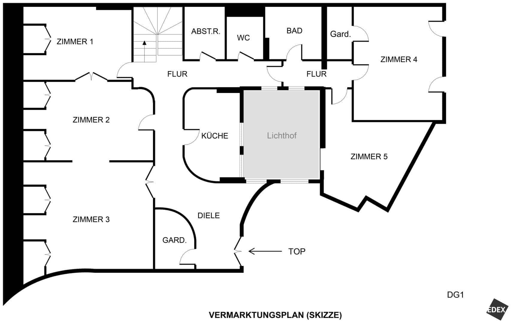 Die ca. 320,77 m² große Wohneinheit erstreckt sich über zwei Ebenen eines gepflegten historischen Zinshauses. Die Raumkonfiguration ist großzügig angelegt und bietet vielfältige Optionen für eine individuelle Grundrissgestaltung.