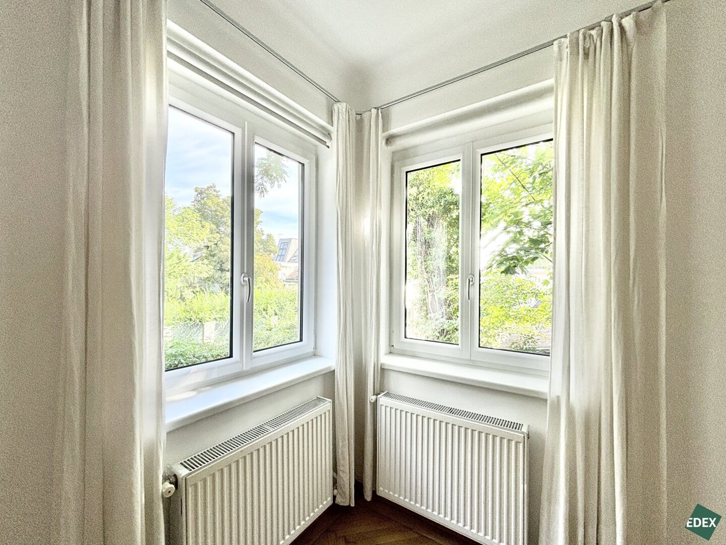 Der Wohnraum ist mit einem klassischen Fischgrät-Parkettboden ausgestattet, während Küche, Vorraum und Sanitärräume verfliest sind. Geheizt wird mittels Gasetagenheizung.