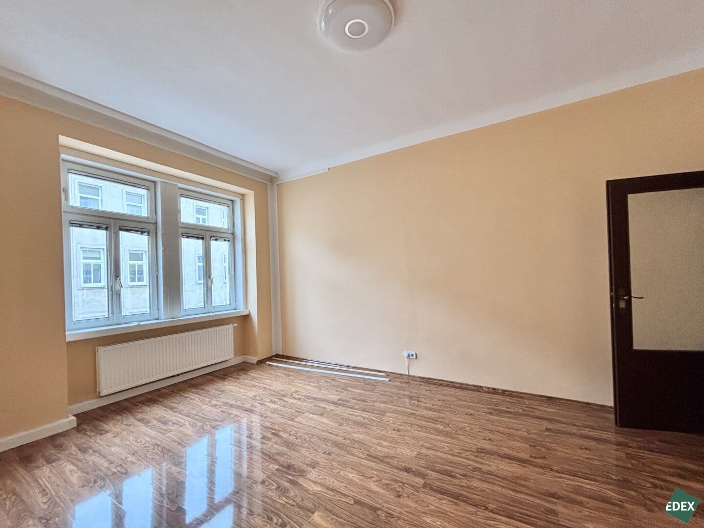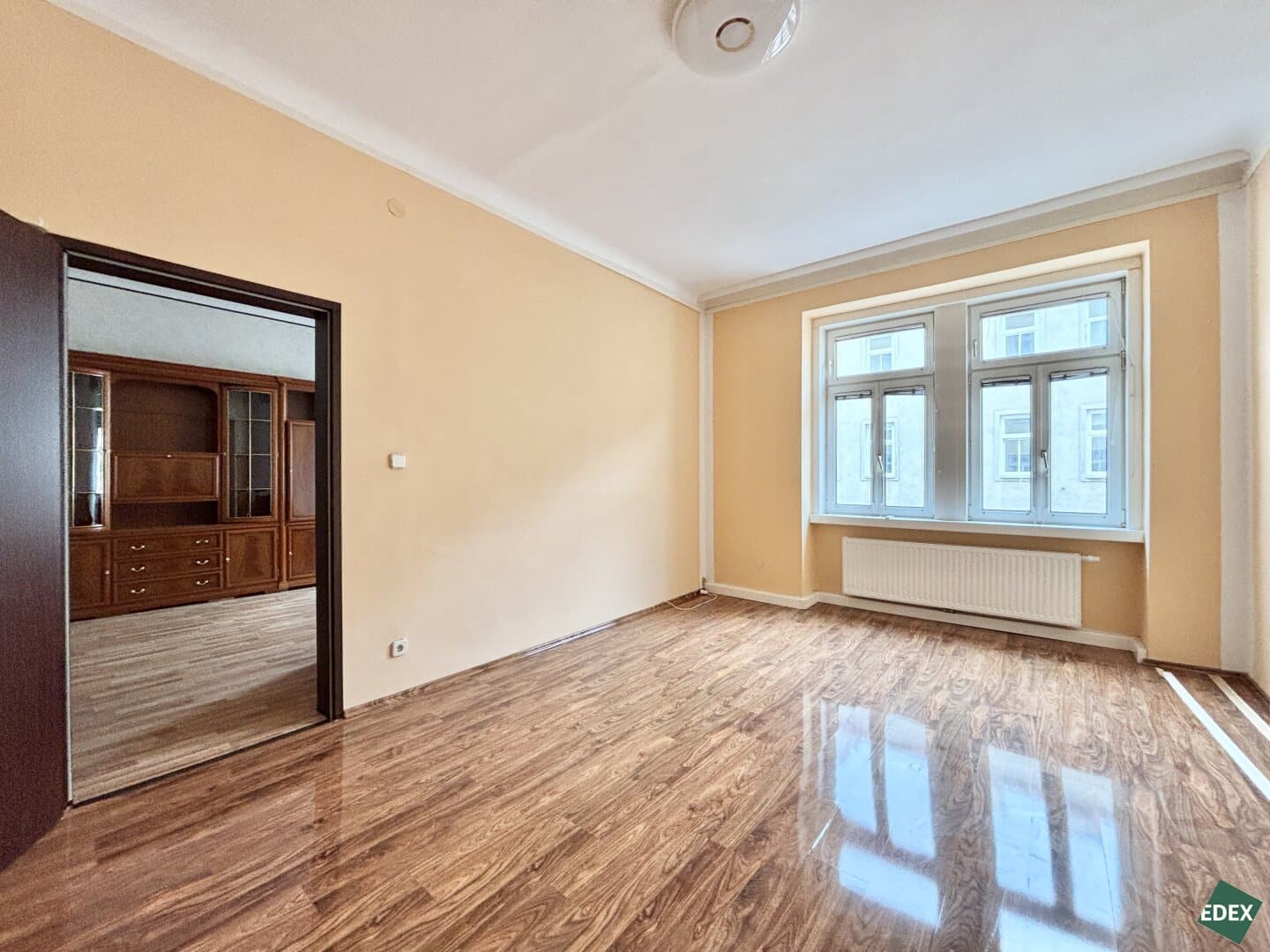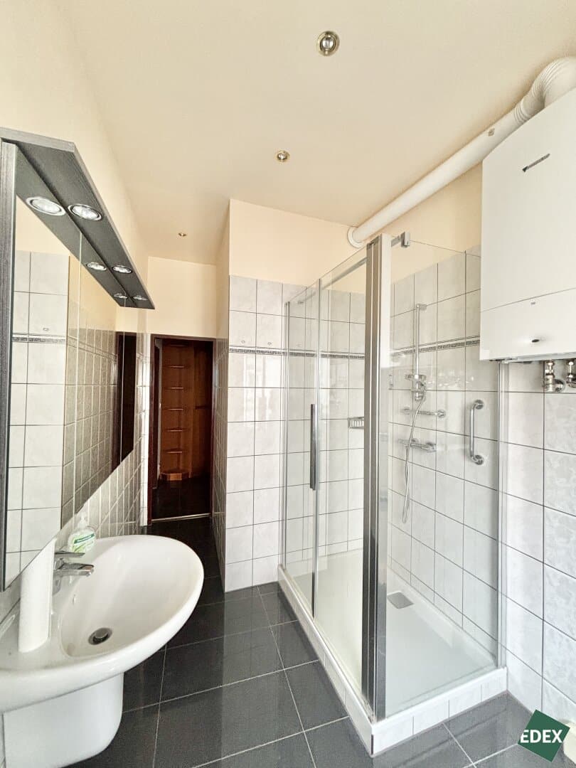 Die Wohnung bietet eine großzügige Raumaufteilung mit Vorraum, Wohnzimmer, separater Küche, vier weiteren Zimmern, einem Badezimmer mit Fenster, Dusche und Bidet, einer separaten Toilette sowie einem praktischen Schrankraum. Der Grundriss ermöglicht eine flexible Nutzung – sowohl für Familien als auch für Wohngemeinschaften oder als Kombination aus Wohnen und Arbeiten.