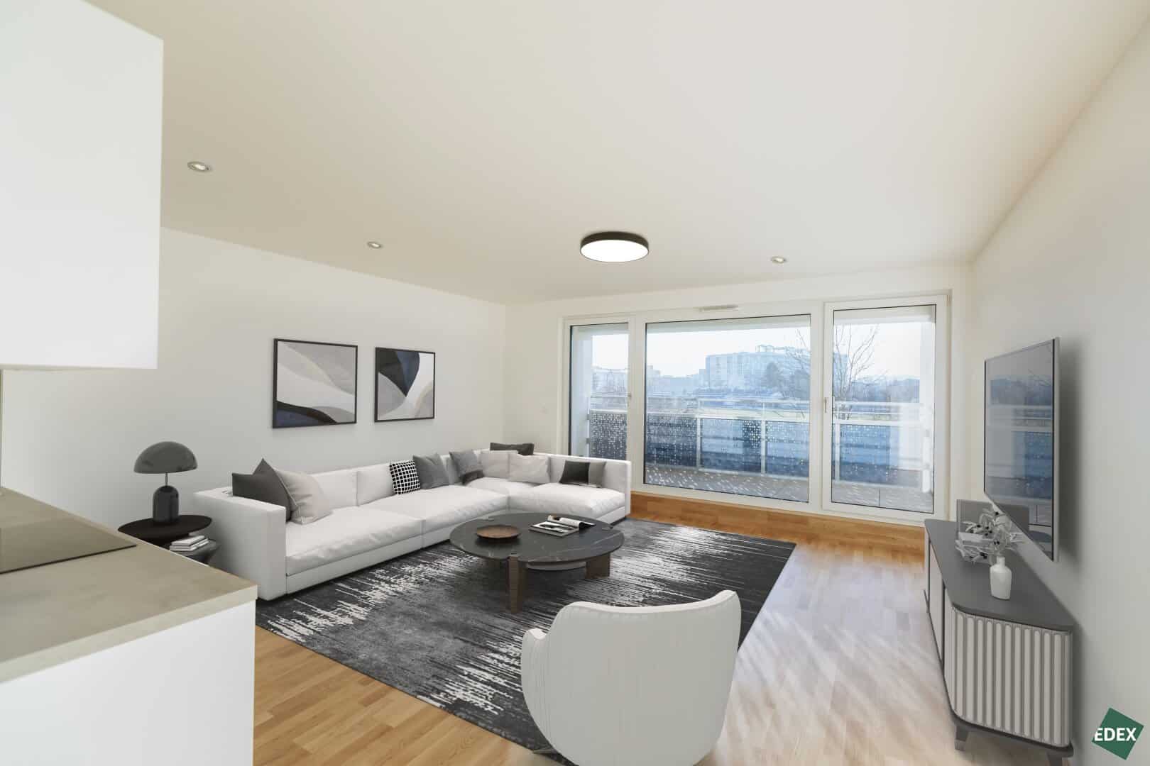 Der besondere Charme dieser Wohnung wird durch die ca. 5,6 m² große Loggia unterstrichen, die nach Westen ausgerichtet ist und Ihnen einen Blick ins Grüne bietet. Der äußerst effiziente Grundriss macht diese Wohnung auch zu einer idealen Anlegerwohnung für Vermietungszwecke.