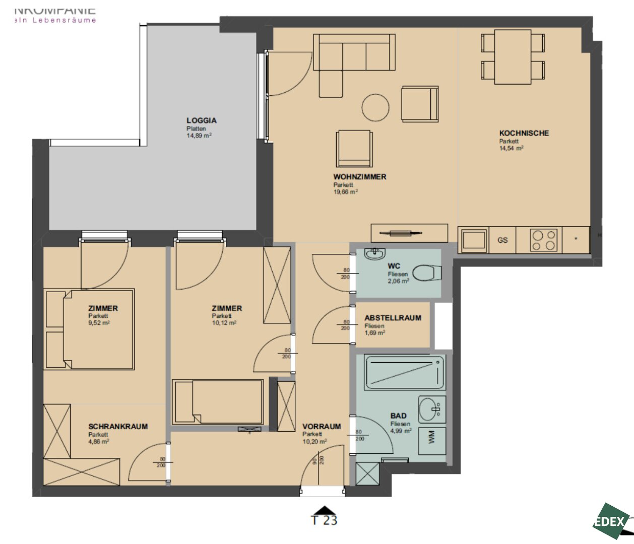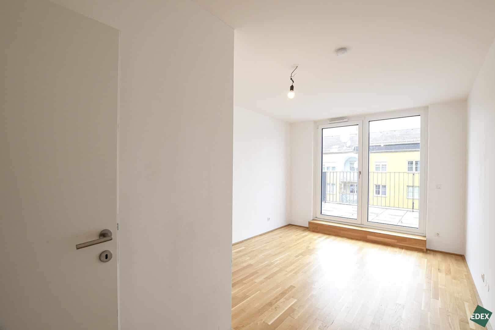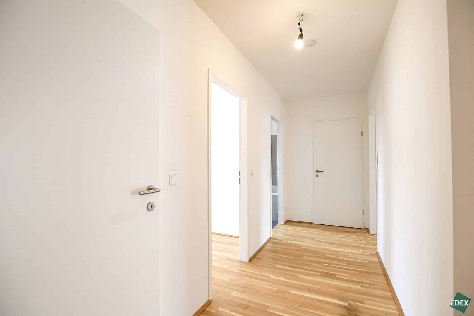 Zur Vermietung gelangt eine 3-Zimmer Wohnung in urbaner Atmosphäre. Die helle Wohnung verfügt über einen Vorraum, ein modernes Badezimmer mit Badewanne, Waschmaschinenanschluss und ein separates WC, einen großzügigen Wohnbereich mit einer modernen, offenen Küche, zwei Schlafzimmer, sowie über eine Loggia. Für zusätzlichen Stauraum sorgt ein Kellerabteil. Die 3-fach-verglasten Fenster sind mit elektrischer Außenbeschattung ausgestattet. Die Wohnräume sind mit schönem Parkettboden ausgestattet und die Nassräume mit Fliesen verlegt.