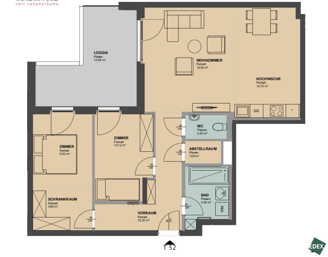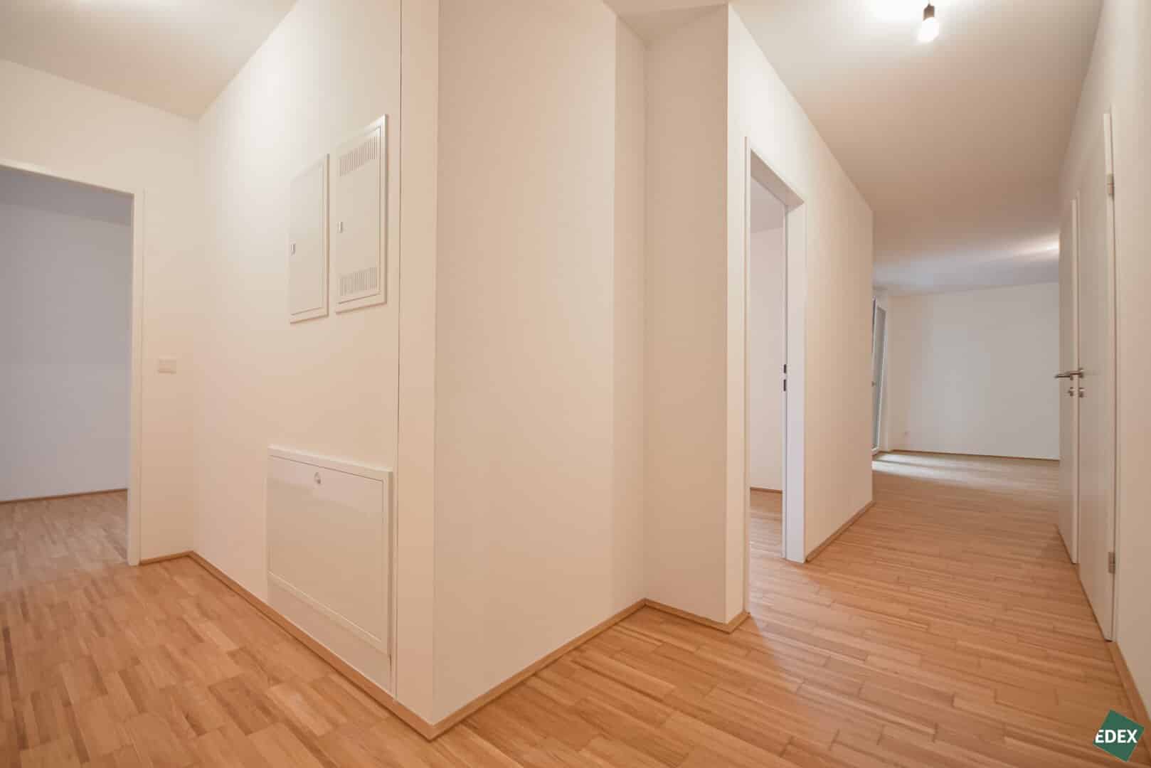 Zur Vermietung gelangt eine 3-Zimmer Wohnung in urbaner Atmosphäre. Die helle Wohnung verfügt über einen Vorraum, ein modernes Badezimmer mit Badewanne, Waschmaschinenanschluss und ein separates WC, einen großzügigen Wohnbereich mit einer modernen, offenen Küche, zwei Schlafzimmer, sowie über eine Loggia. Für zusätzlichen Stauraum sorgt ein Kellerabteil. Die 3-fach-verglasten Fenster sind mit elektrischer Außenbeschattung ausgestattet. Die Wohnräume sind mit schönem Parkettboden ausgestattet und die Nassräume mit Fliesen verlegt.