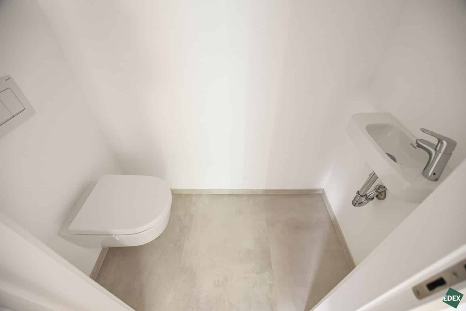 Alle Wohnräume sind mit hochwertigem Eichenparkett ausgestattet, während das Badezimmer und die Toilette mit zeitlos eleganten Fliesen versehen ist. In dem gesamten Objekt sorgt eine Fußbodenheizung für angenehmen Komfort. Zusätzlichen Stauraum bietet ein großzügiges Kellerabteil. Im Haus stehen zudem ein Kinderwagen- sowie ein Fahrradabstellraum zur Verfügung.