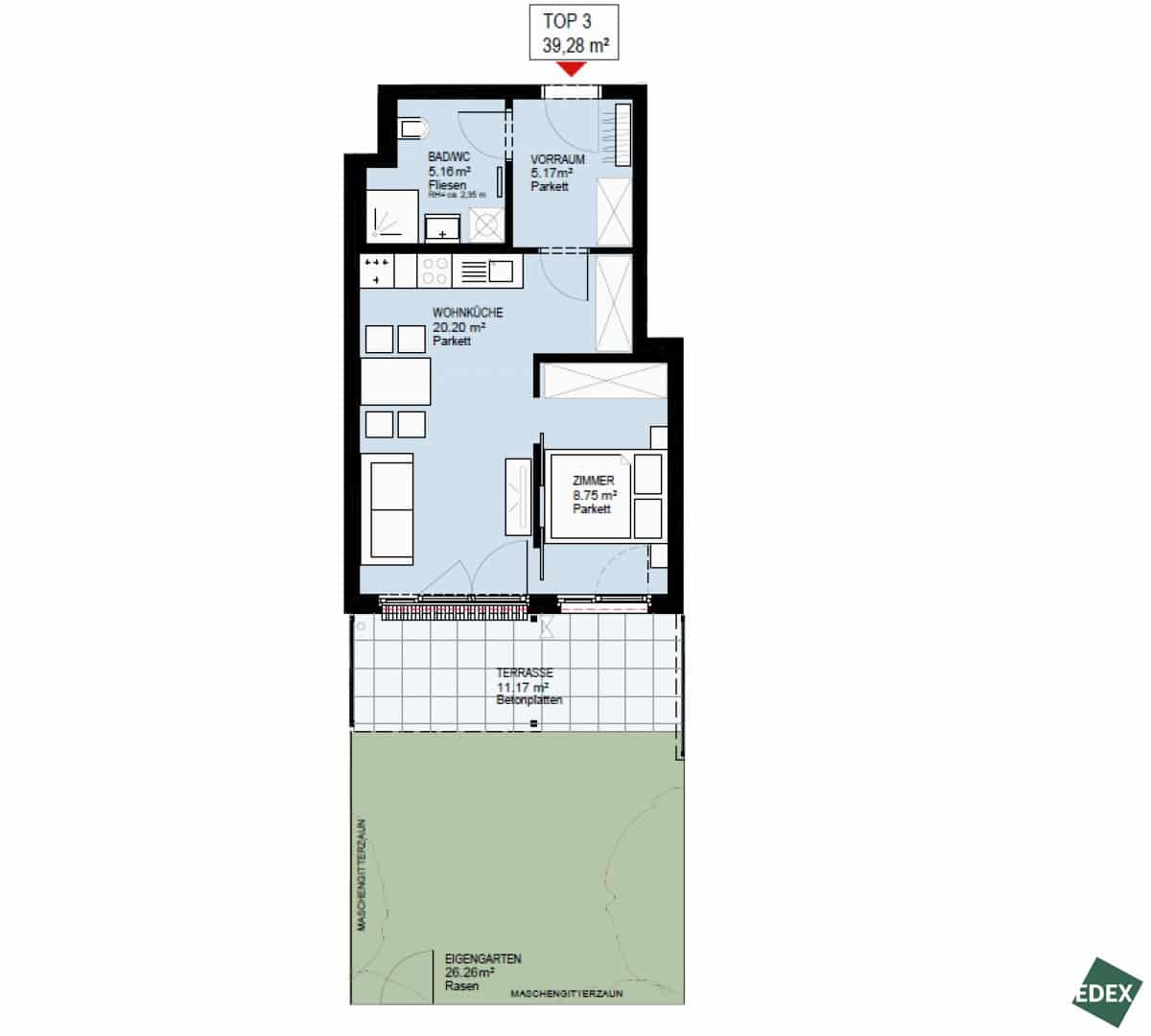 39,28 m2 Fläche -