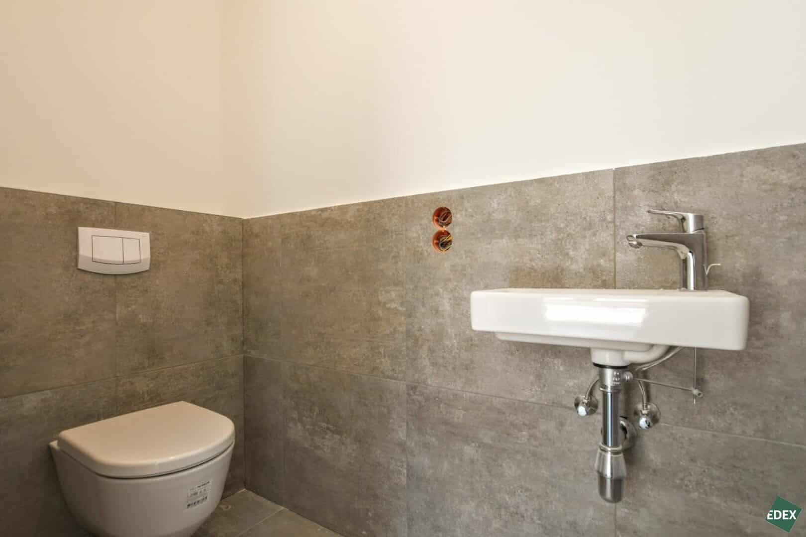 Die Terrasse wurde mit eleganten Holzdielen verkleidet. Alle Wohnräume sind mit hochwertigem Eichenparkett und das Badezimmer mit zeitlosen eleganten Fliesen ausgestattet. In der Wohnung wurde eine Fußbodenheizung verlegt. An allen Fenstern befinden sich elektrische Außenrollos.