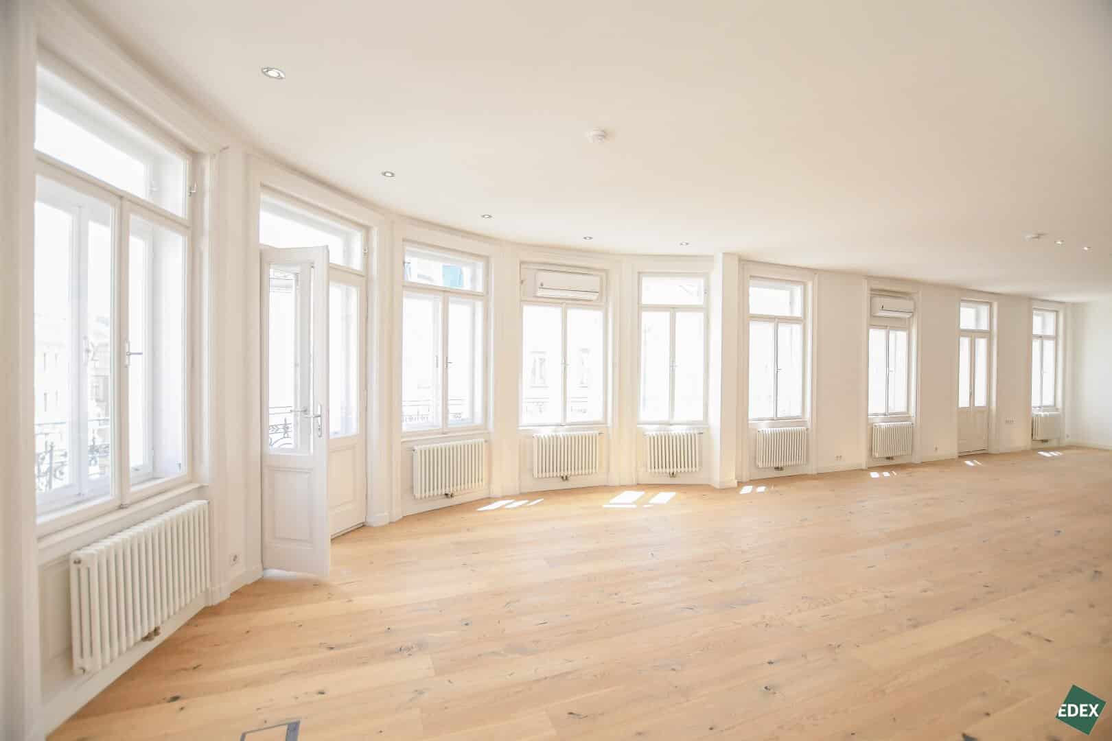 Direkt in der Wipplingerstraße gelangt dieser klimatisierte 3-Zimmer-Altbau ab sofort zur Vermietung. Die Wohnung befindet sich im 4. Stock (mit Lift) und hat eine Größe von ca. 150 m². Die Wohnung verfügt über einen Vorraum, einen weitläufigen und lichtdurchfluteten Wohnbereich, der mit einer moderne Küche inkl. einer frei stehenden Kücheninsel samt Kühlschrank & Tiefkühler, Herd & Backrohr, Dunstabzug und Geschirrspüler. Zudem gibt es zwei Abstellräume (einer ist als begehbarer Kleiderschrank gedacht) und ebenfalls zwei Badezimmer, welche über Duschen, eine frei stehende Badewanne, Waschbecken und ein WC verfügen. Zusätzlich gibt es ein großes Schlafzimmer und ein separates Gäste WC. Das Wohn- sowie das Schlafzimmer sind wie alle anderen Räume zentral über den Vorraum begehbar und mit einer Klimaanlage ausgestattet.