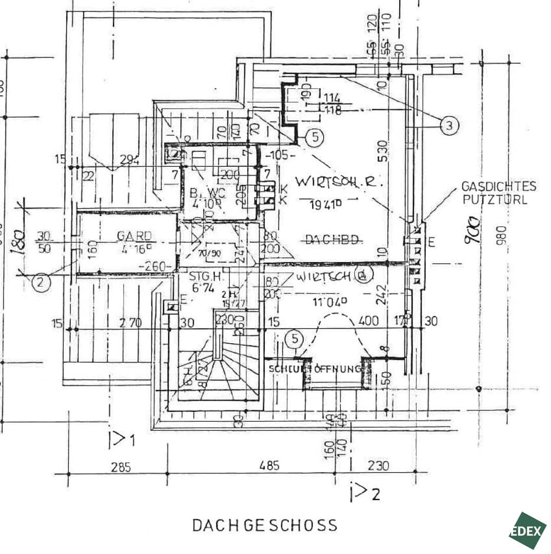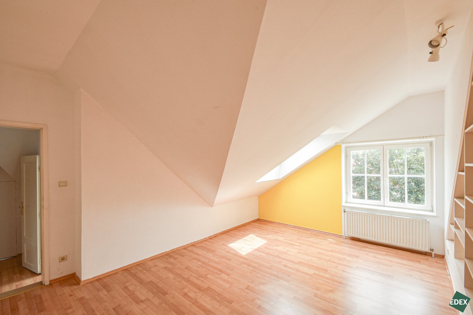 DG: Das Dachgeschoss verfügt über zwei Schlafzimmer sowie ein kleines Badezimmer mit Dusche und Waschbecken. Zusätzlich gibt es hier noch einen Abstellraum.