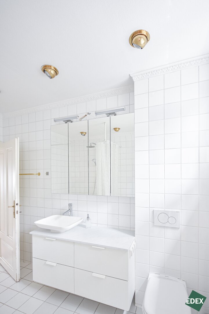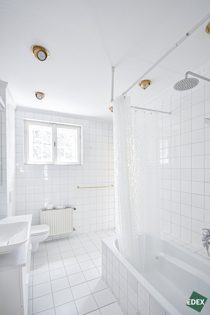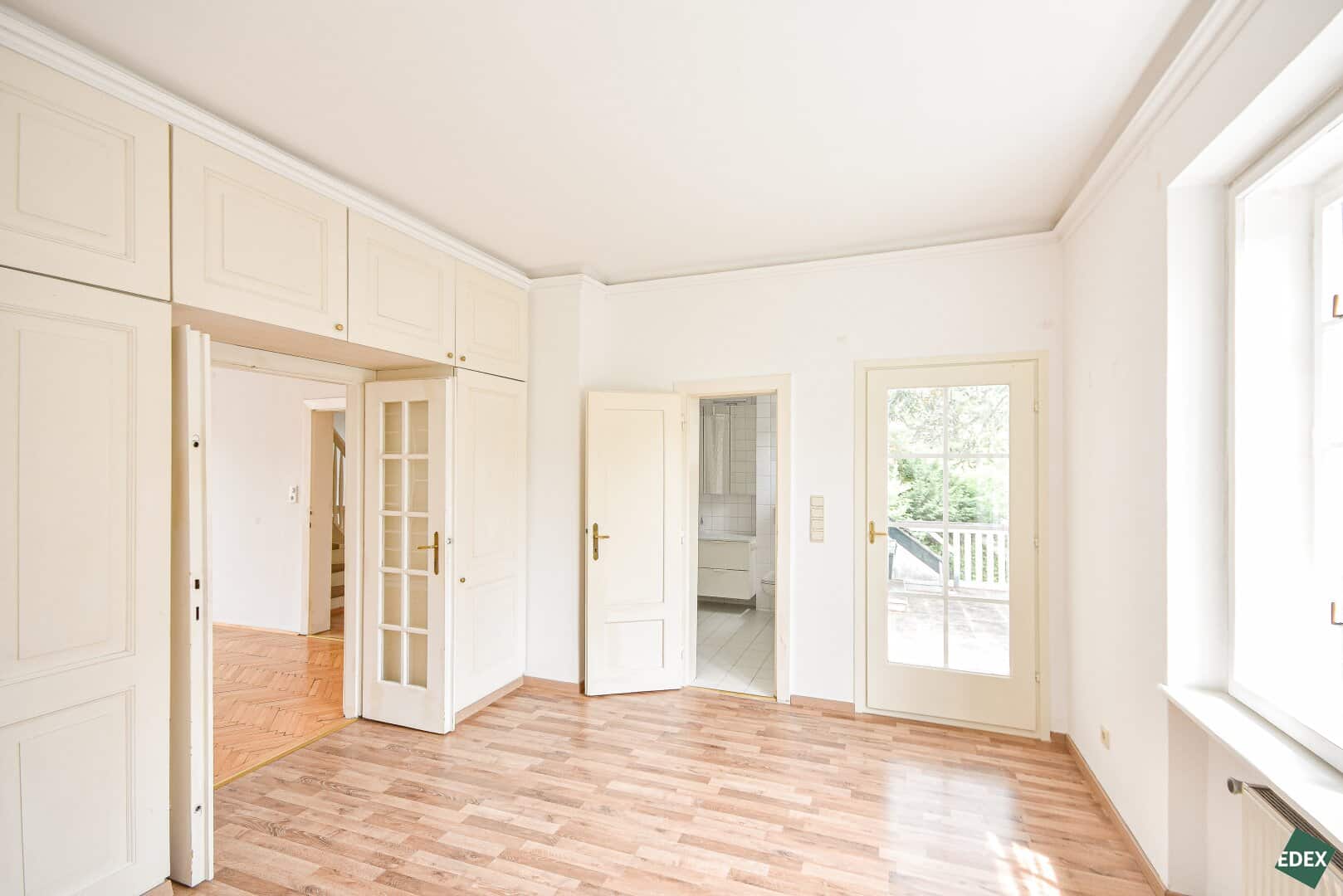 OG: Im ersten Geschoss gelangt man über ein Vorzimmer in zwei große Schlafzimmer (eines davon in den Garten ausgerichtet und mit Zugang zur Terrasse) sowie in ein Kabinett inkl. Schrankraum. Auch befindet sich auf dieser Etage ein großes Badezimmer mit Badewanne, WC und Waschbecken.
