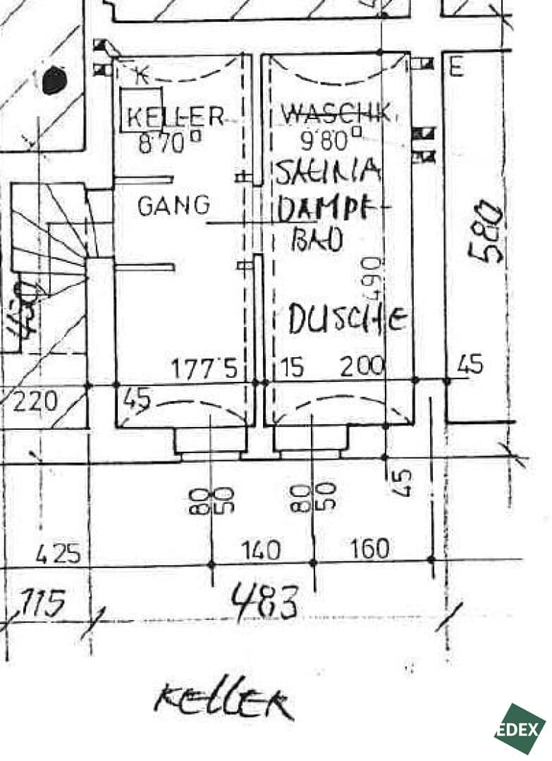 Keller: Der Keller besitzt einen Abstellraum, in dem auch Wäsche getrocknet werden kann, eine kleine Sauna sowie eine Dusche.