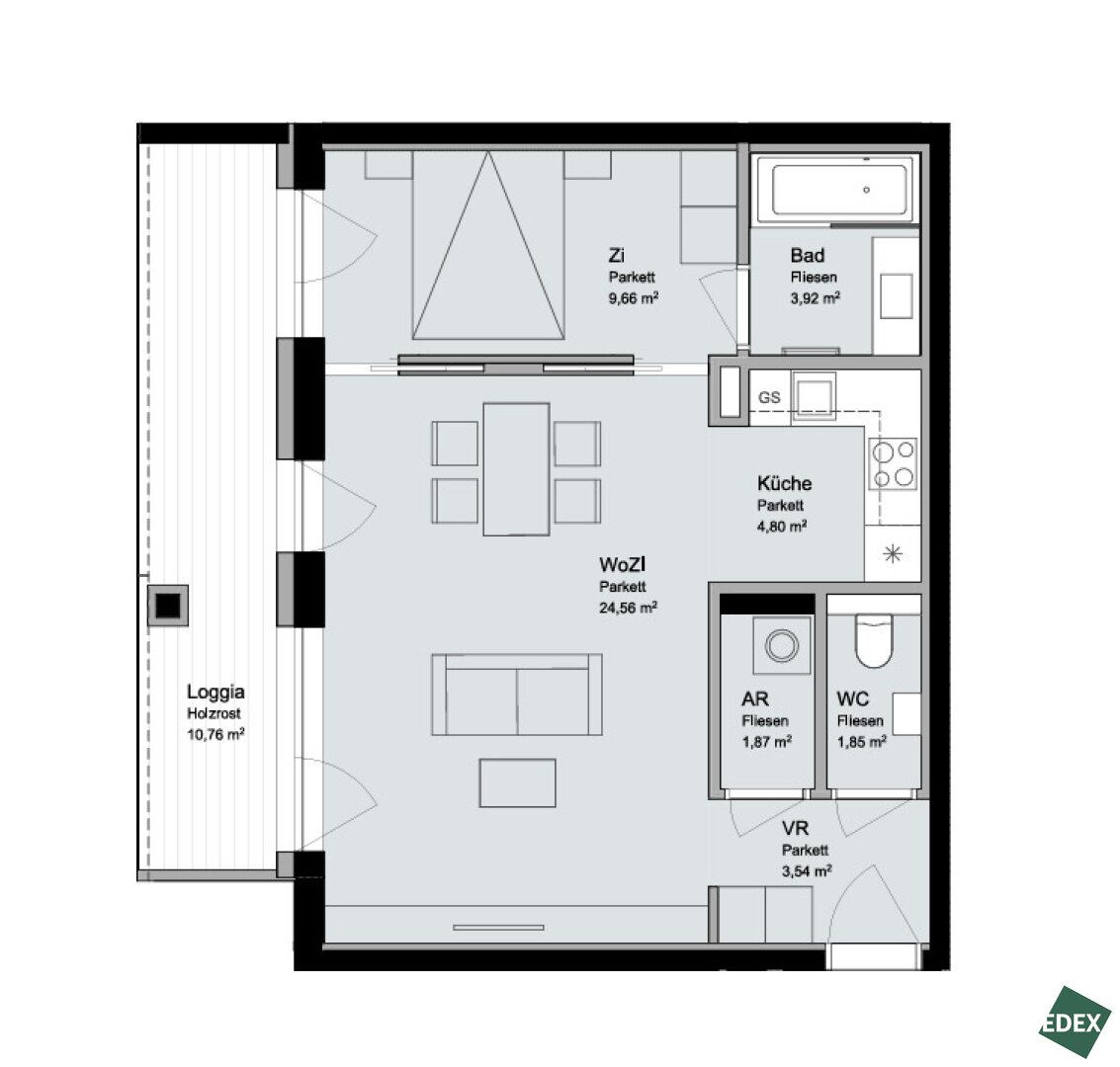 Die Wohnung liegt im Haus „EDUART“ – einem architektonisch anspruchsvollen Neubau mit modernem Gesamtkonzept, hochwertiger Materialwahl, großzügigen Freiflächen und attraktiven Gemeinschaftsbereichen.