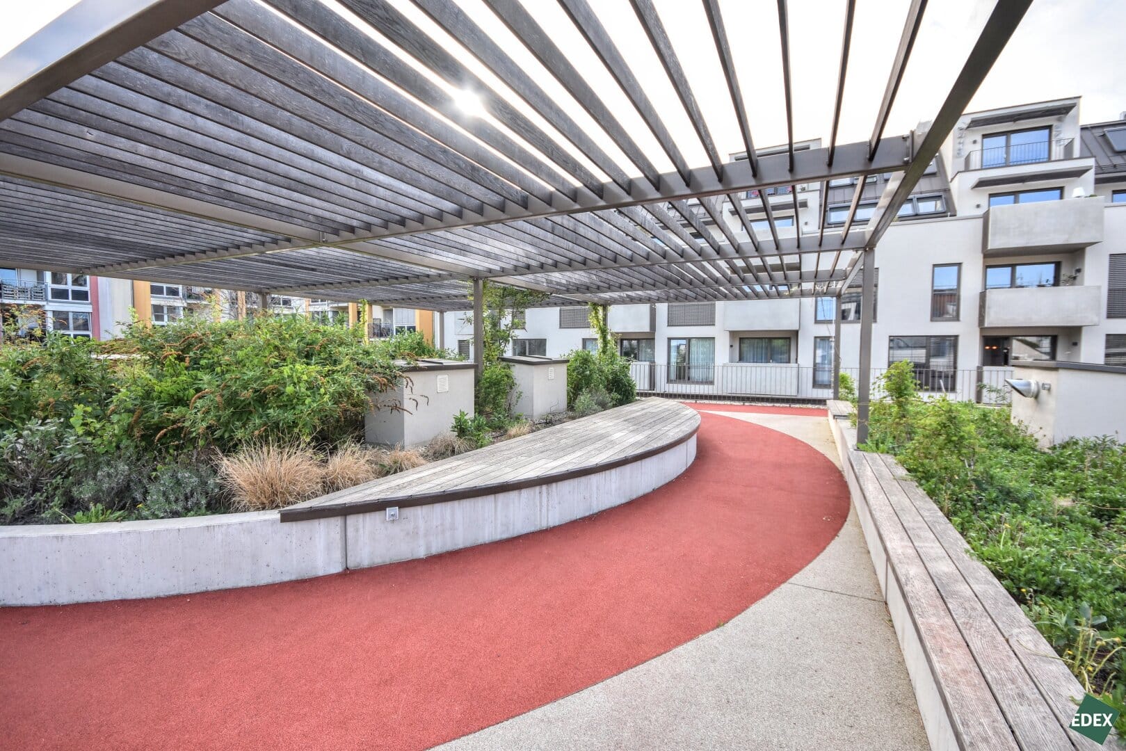 Gemeinschaftsdachterrasse mit Laufbahn & Tiefgarage im Haus