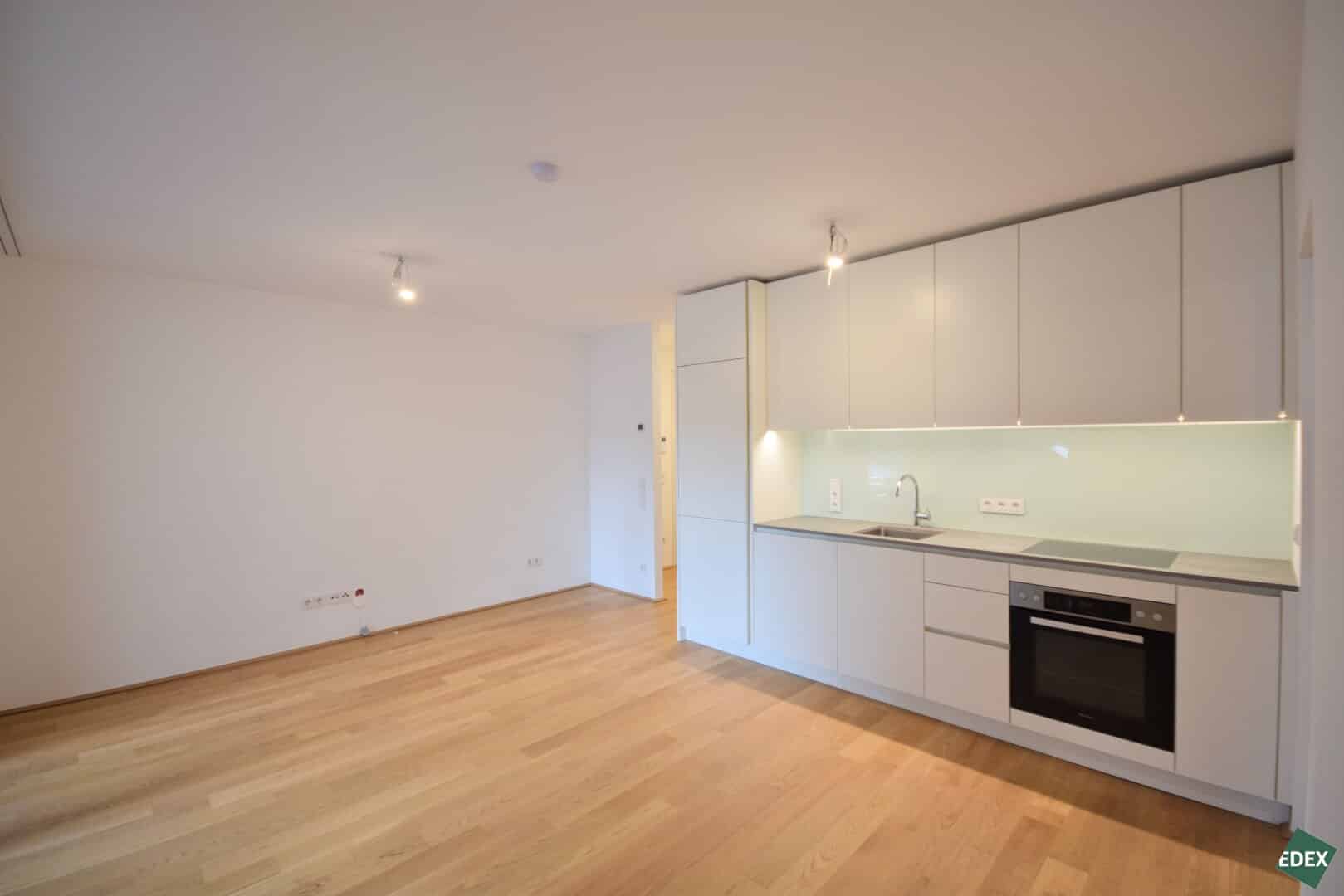 A high-quality 2-room new-build apartment of approx. 50 m² with an approx. 11 m² loggia is available for fixed-term rental in an elegant residential project in Vienna’s 18th district.