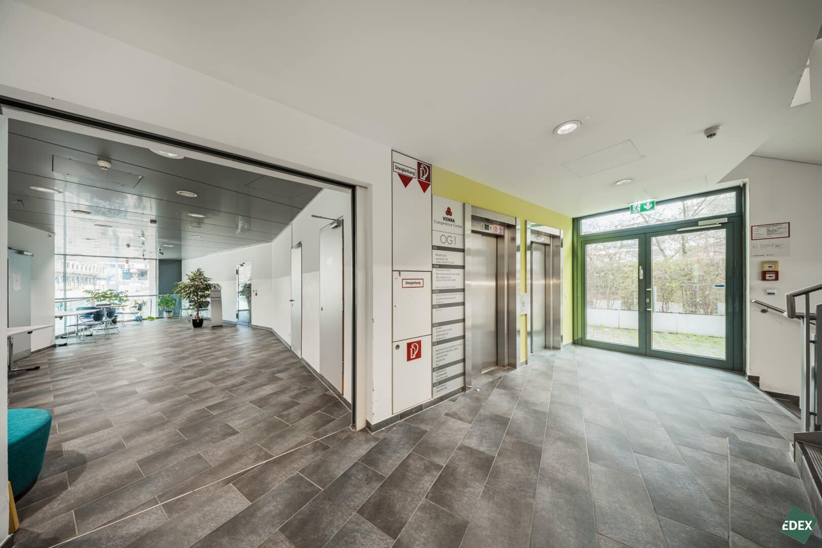 Im 9. Wiener Gemeindebezirk gelegen, präsentiert sich das Vienna Competence Center als modernes Büro- und Forschungsgebäude in prominenter Lage – direkt gegenüber dem Allgemeinen Krankenhaus. Das Erdgeschoss empfängt Besucher mit einer großzügigen, verglasten Eingangshalle, einem barrierefreien WC sowie einem zentral nutzbaren Konferenzraum. Auf insgesamt fünf Ebenen verteilen sich Labor- und Büroflächen, die primär auf Unternehmen und Institutionen aus Forschung, Wissenschaft und dem Life-Science-Sektor ausgerichtet sind. Durch die Lage im Herzen der „medizinischen Forschungsmeile“ ist das Objekt besonders attraktiv für Mieter aus dem medizinischen Umfeld – wie etwa Ordinationen, Labore oder Gesundheitsdienstleister. Der neue MedUni Campus Mariannengasse ist zudem nur wenige Schritte entfernt.