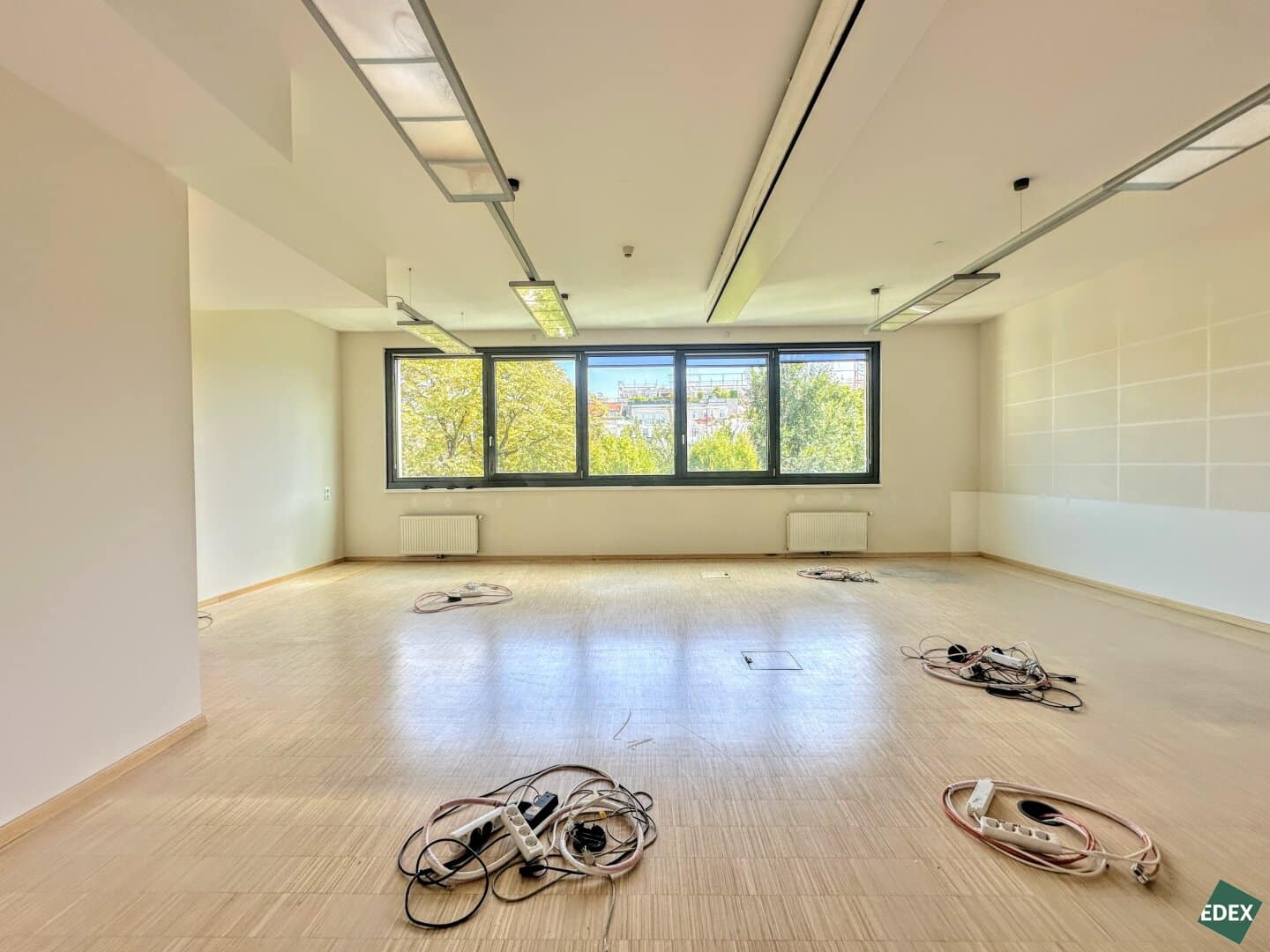 Das Gebäude vereint somit hochwertige Infrastruktur für wissenschaftliche Einrichtungen mit den Anforderungen moderner Arbeitswelten. Die zur Verfügung stehende Fläche im 4. Obergeschoss zeichnet sich durch eine funktionale Raumaufteilung und einen klar strukturierten Grundriss aus. Die Fläche bietet einen einladenden Empfangsbereich, verschieden große Büro- und Besprechungsräume, eine Teeküche sowie getrennte WC-Anlagen. Durch die flexible Raumaufteilung lässt sich die Einheit gut an unterschiedliche Nutzungsbedürfnisse anpassen. Ein besonderes Highlight sind die vorhandenen Terrassenflächen, die zusätzlichen Freiraum schaffen und sich ideal für Pausen oder Besprechungen eignen.