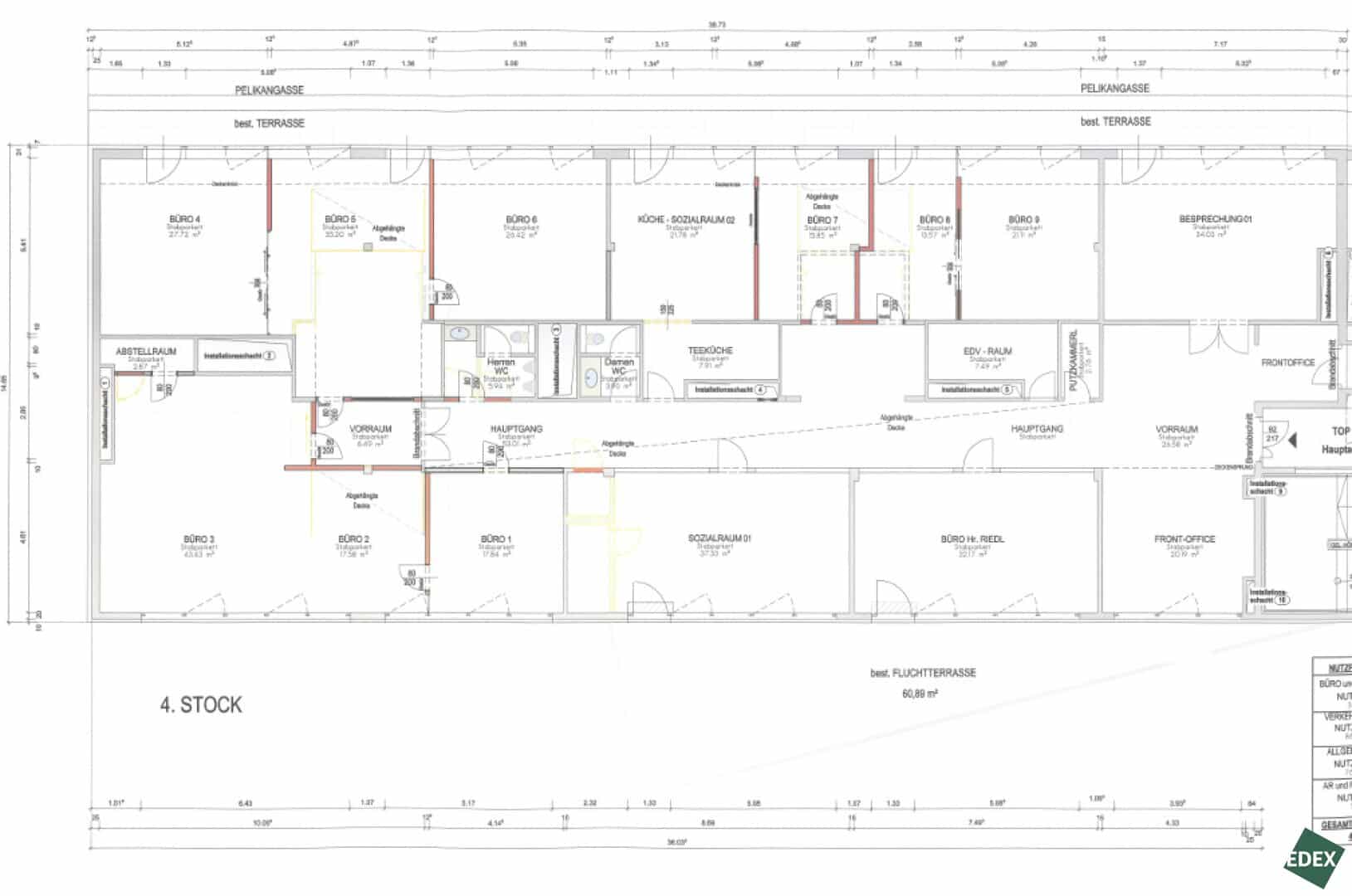 - 4.OG – Top 1+2: ca. 866 m² (teilbar 366m²|500m²)