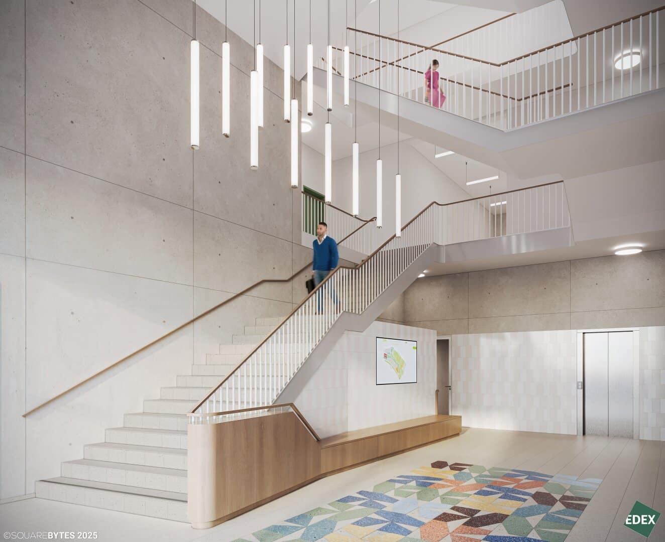 Einladende Entrées & Treppenhäuser, durch Einschnitte und Treppenaugen lichtdurchflutet
