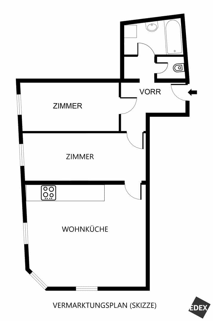 Wohnen nahe Schubertpark – 2 Zimmer mit separater Küche