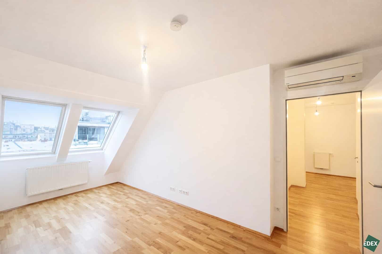 Hochwertiger Echtholz-Parkettboden, moderner Sanitärbereich, Video-Gegensprechanlage, Sicherheitstüre sowie die Klimaanlage runden das attraktive Gesamtangebot ab.