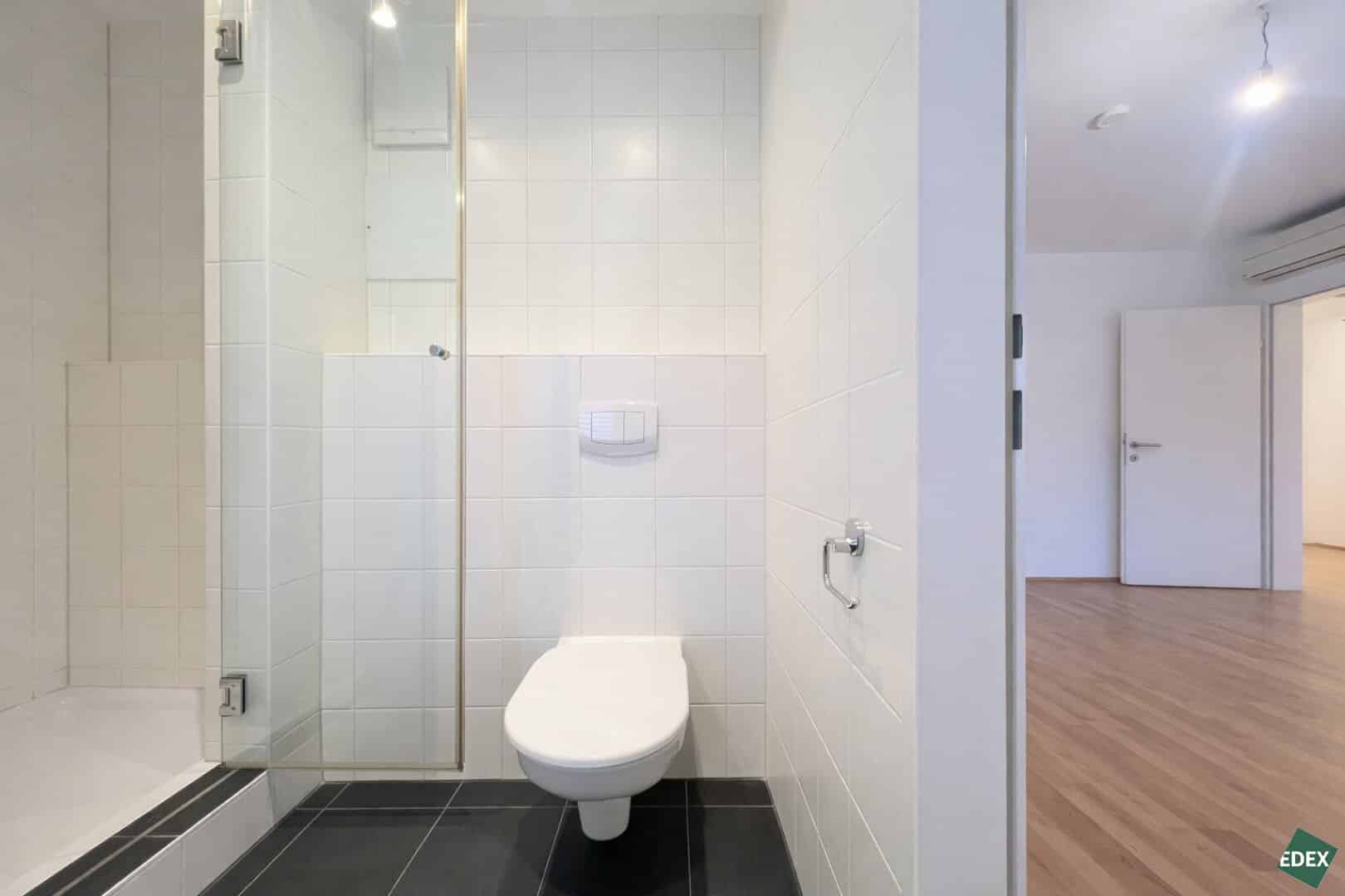 Zusätzlich ist ein separates WC mit Handwaschbecken vorhanden. Der Vorraum verbindet alle Räume zentral und sorgt für eine angenehme Erschließung.