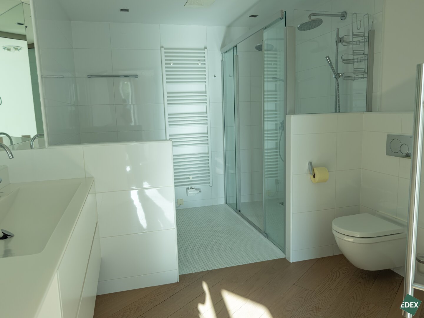 Die moderne Küche ist offen in den Wohnbereich integriert und mit sämtlichen Geräten ausgestattet. Die gesamte Wohnung wird mittels Fußbodenheizung beheizt.