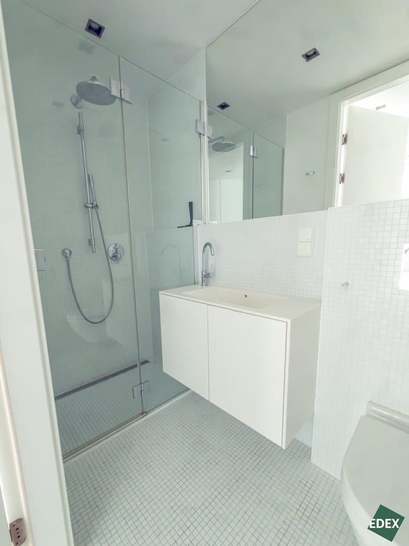 Der zentrale Vorraum erschließt alle Räume, bis auf das große Badezimmer mit Badewanne und WC, dass an eines der Schlafzimmer angeschlossen ist.