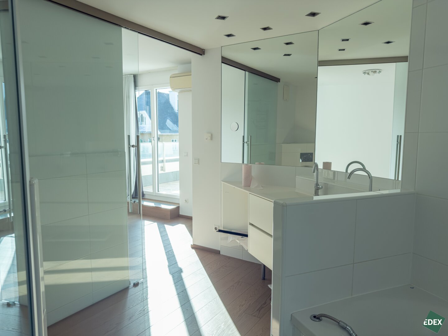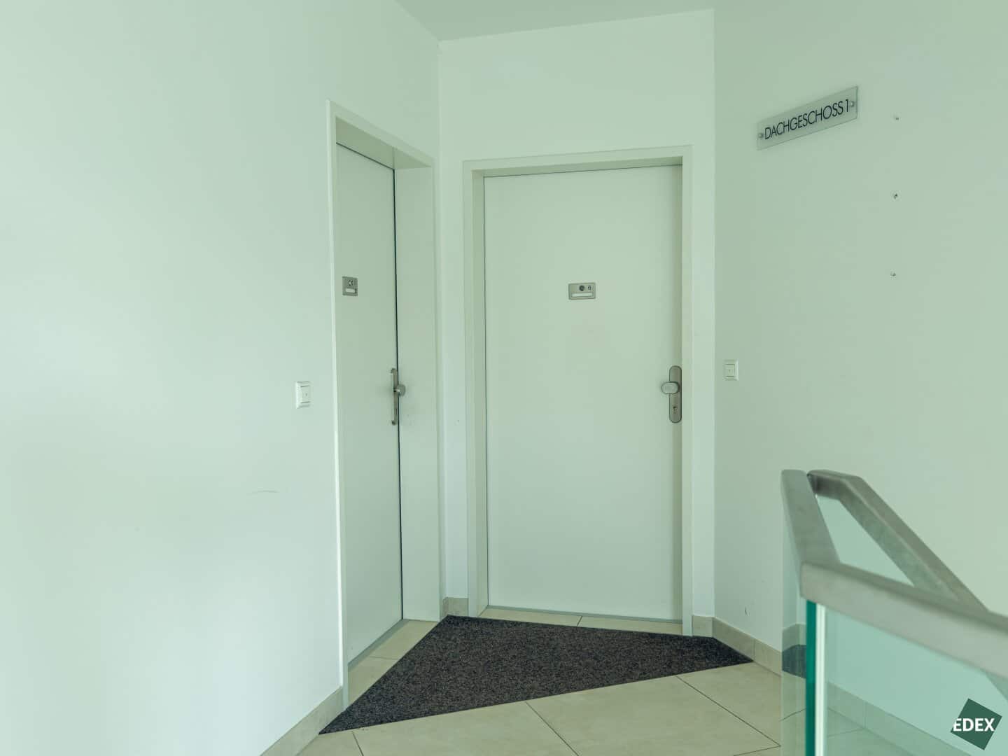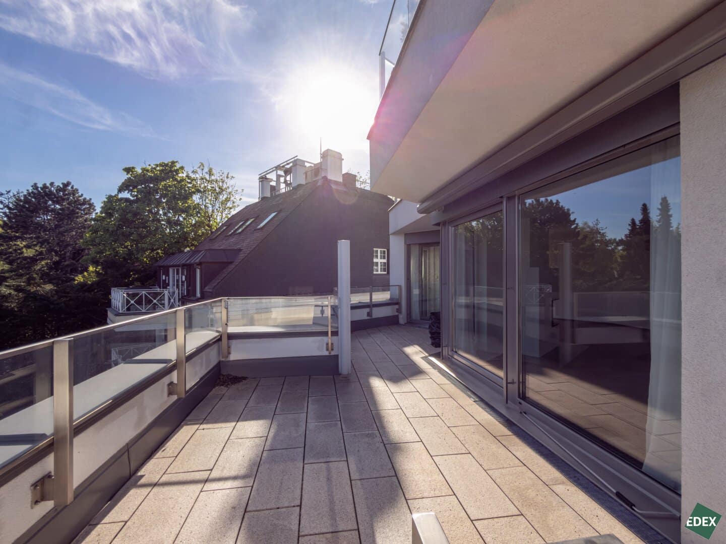 Das Herzstück der Wohnung ist der beeindruckende, rund 66 m² große Wohnbereich, der durch seine offene Gestaltung, große Fensterflächen und den offenen Kamin ein einzigartiges Wohngefühl vermittelt. Von hier aus gelangt man auf eine weitläufige Terrasse, die zusätzlichen Freiraum im Grünen bietet.